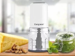 Der Beper Beper BP.552 Universal-Zerkleinerer ist ein praktisches Küchenwerkzeug, das Lebensmittel in Sekundenschnelle zerkleinert. Sein ABS-Gehäuse und der 500 ml Plastikbehälter ermöglichen es, unterschiedliche Mengen zu behandeln. Die Doppelpaare von Edelstahlklingen sorgen für eine homogene Zerkleinerung aller Lebensmittel im Behälter. Eine Klinge kann optional verwendet werden, um größere Stücke zu schneiden. Zur Sicherheit verfügt der Beper BP.552 Universal-Zerkleinerer über ein Sicherheitssystem mit rutschfesten Füßen, die einen festen Stand garantieren. Er lässt sich leicht zerlegen und reinigen und ist schnell und einfach zu bedienen.
