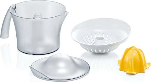 Universalpresskegel für große und kleine Früchte mit Links-und Rechtslauf für hohe Ausbeute. Großer abnehmbarer Saftbehälter mit 800 ml Fassungsvermögen und Mess-Skalierung. Leichte Reinigung durch spülmaschinengeeignete Teile