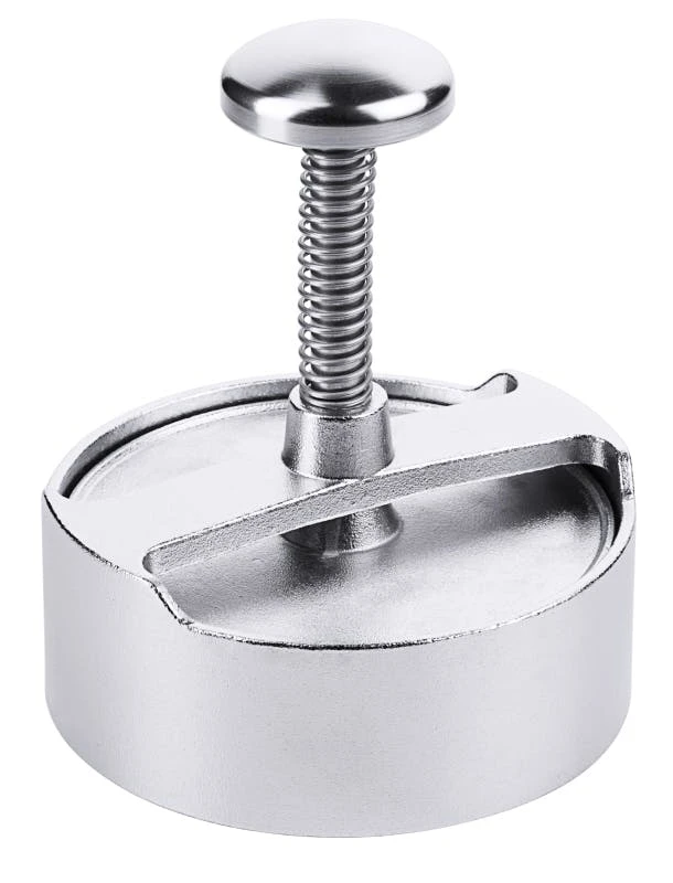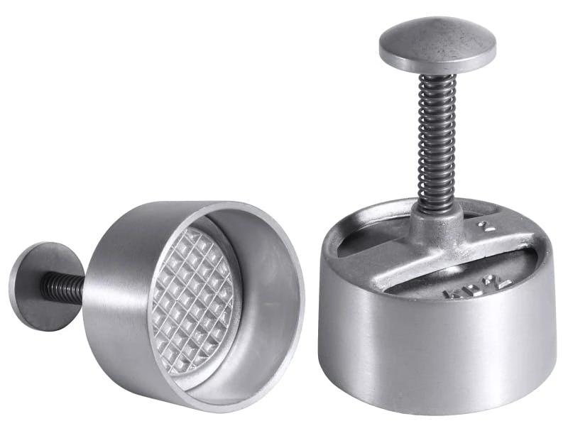 Hackfleischpresse, Edelstahl für etwa 250 g Hackfleisch, aus Edelstahlguss, elektropoliert, mit Pattyauswerfer, spülmaschinengeeignet, zur Reinigung zerlegbar, schwere Qualität