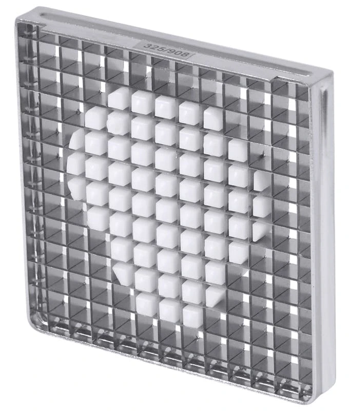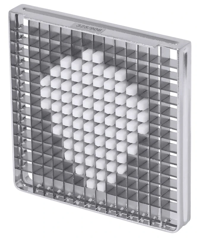 Verzinnter Schneideinsatz 10×20 mm zu Pommes frites-Schneider, ganz aus Edelstahl 18/10 (auch Bodenplatte), auswechselbare Schneideinsätze aus gehärtetem Messerstahl, spülmaschinenfest, 4 bis 5 kg Durchsatz in der Minute