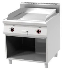 Griddleplatte 1/2 glatt, 1/2 gerillt, 800x900x900mm, Platte aus Edelstahl (15 mm stark), Arbeitsfläche 710x650mm Fettschublade, 400V / 3N, 50 Hz, 12 kW, 126,3 kg Tür nachrüstbar