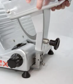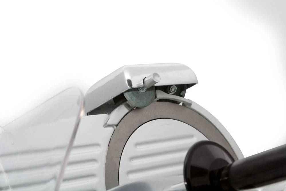 Messerdurchmesser: 250 mm. Stufenlos einstellbare Schnittstärke von 0 bis 15 mm. Maximaler Aufschnittdurchmesser: 180 mm.