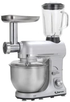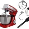 Syntrox Germany Küchenmaschine De Luxe mit Fleischwolf und Mixer – eine besondere MaschineSie haben keine Lust mehr auf Ihren alten Mixer, mit dem Sie nur schwerlich Teige verrühren und kneten können? Legen Sie sich doch eine neue und praktische Küchenmaschine mit vielen Funktionen zu. Hier bekommen Sie die Syntrox Germany Küchenmaschine und Knetmaschine mit Fleischwolf und Mixer. Die De Luxe Variante bietet Ihnen viele Extras und beinhaltet vor allem gleich mehrere Geräte in einem. Sie können sich dank der Küchenmaschine einen separaten Mixer und Fleischwolf sparen. Das ist doch schon ein Grund, sich solch eine besondere Küchenmaschine zu organisieren. Schon auf dem ersten Blick werden Sie feststellen, dass die Küchenmaschine so anders ist als viele andere Modelle. Das Design ist relativ zeitlos und angenehm gestaltet. Sie passt daher auch perfekt in jede Küche. Bestellen Sie sich die Syntrox Germany Küchenmaschine De Luxe mit Fleischwolf und Mixer und profitieren anschließend von den vielen Besonderheiten und Extras.Eine Küchenmaschine mit dem AHA-Effekt – überzeugend gutDie meisten Küchenmaschinen sind Maschinen, mit denen Sie Zutaten verrühren und Teige kneten können. Doch diese Küchenmaschine De Luxe aus dem Hause Syntrox Germany hingegen bietet Ihnen vieles mehr. Verschiedene Aufsätze und Zubehörteile sind vorhanden, sodass Sie sich über ein Plus an Vielfalt freuen können. Multifunktionell ist die Küchenmaschine De Luxe. Zu den Zubehörteilen gehören unter anderem: • Fleischwolfaufsatz • Rührhaken • Knethaken • Schneebesen • MixbehälterDas brauchen Sie also nicht separat bestellen und sparen sich daher auch jede Menge Geld ein. Diese leistungsstarke Küchenmaschine in Rot mit der 6,5 Liter Rührschüssel aus Edelstahl wird ein guter Helfer für Sie sein. Kneten, mischen, zerkleinern, mixen und mahlen Sie mit dem entsprechenden Zubehör die verschiedenen Lebensmittel und Zutaten. Es ist egal, ob es sich um weiche oder schwere Teige wie Brotteig handelt. Die leistungsstarke Küchenmaschine mit den Knethaken und Rührhaken nimmt sich der Sache an und vermengt die Teige optimal. Es gibt eine mehrstufige Geschwindigkeitsregulierung, sodass sich das Gerät der Konsistenz der Lebensmittel anpasst. Der modulare Mixbehälter der Küchenmaschine mit einem Fassungsvermögen von 1,5 Litern bringt Ihnen auch viele Vorteile. Damit können Sie beispielsweise Milchshakes und Smoothies herstellen. Sogar Suppen können Sie pürieren und genießen. Mit dem Fleischwolf verarbeiten Sie bei Bedarf Fleisch und Fisch. Das bringt Ihnen auch den Vorteil, dass Sie nicht auf das fertige Hackfleisch aus dem Laden zugreifen müssen. Sie können Hackfleisch selber herstellen und nach Belieben Gewürze und Zutaten hinzufügen.Eine Küchenmaschine mit Fleischwolf und Mixer von Syntrox Germany für alle FälleBei dieser Küchenmaschine handelt es sich um eine Maschine für alle Fälle. Sie werden die 1.300 Watt starke Knetmaschine mit Fleischwolf aus dem Hause Syntrox Germany bestimmt lieben. Eine Maschine mit einer 6,5 Liter Edelstahl-Rührschüssel und so vielen Funktionen und Möglichkeiten ist ein richtiges Highlight. Sie benötigen keinen Fleischwolf und auch keinen separaten Mixer? In dem Fall sollten Sie sich einfach unsere anderen Küchenmaschinen im Store anschauen. Es gibt eine Vielzahl an Modellen, die alle ihre Besonderheiten und Extras mitbringen. Alle haben aber eins gemeinsam. Sie sind von hoher Qualität. Außerdem integrieren Sie sich sehr gut in der Küche. Aber schauen Sie selber und überzeugen Sie sich nun von den exklusiven und praktischen Küchenmaschinen im Shop. Möchten Sie eine Küchenmaschine De Luxe in Rot bestellen? Der Bestellvorgang ist denkbar einfach und schnell abgeschlossen. Mit wenigen Klicks haben Sie die Bestellung abgeschlossen. Nun gedulden Sie sich noch 1 bis 3 Werktage und können in der Regel dann schon die Ware in Empfang nehmen.Eigenschaften: • Geschwindigkeiten: 6 • Maße Glasbehälter: 19 x 14,5 x 24,5 cm • Fassungsvermögen Glasbehälter: