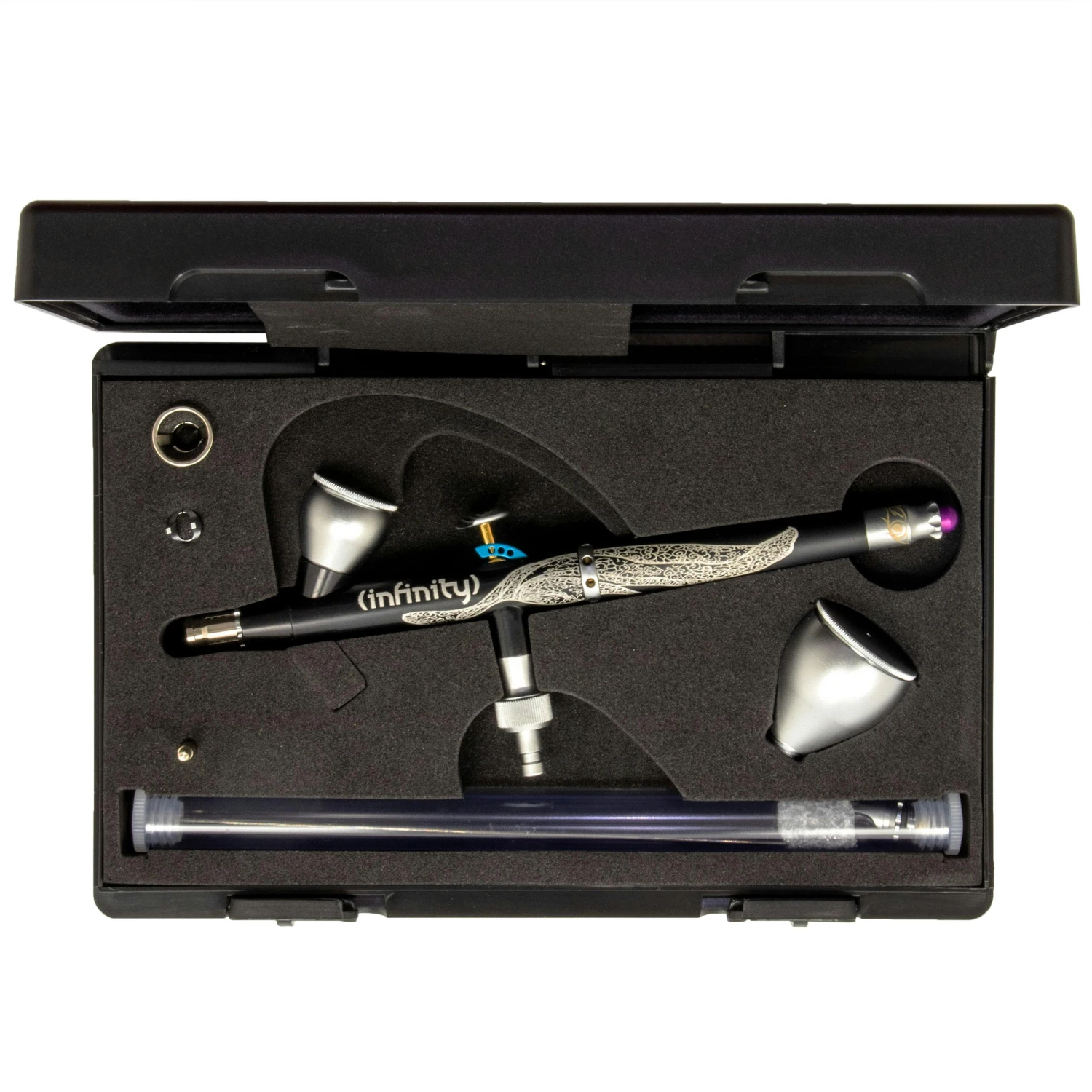 Infinity – Intelligent und elegant Das High-End-Airbrushgerät für professionelle Fine Art Anwendung. Der neue Farbspritzapparat setzt nicht nur im Design neue Maßstäbe, sondern bietet vor allem intelligente Funktionsmöglichkeiten und hohen Komfort!
