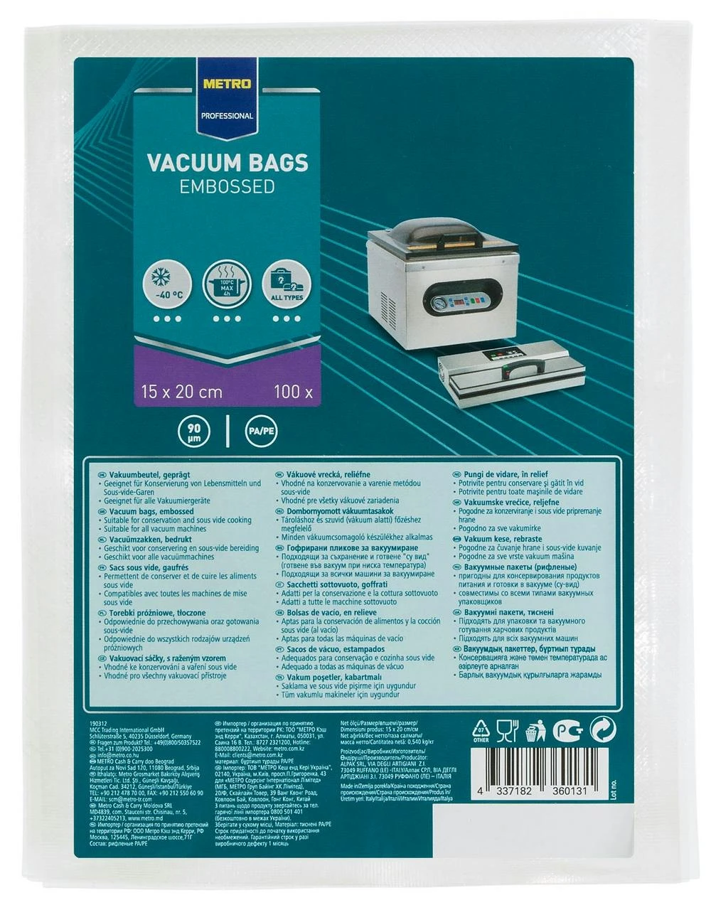 METRO Proffessional Strukturierte Vakuumbeutel, Polyamide/ Polyethylen, 15 X 20 Cm, Geprägt, Hochtemperaturbeständig, 100 Stück